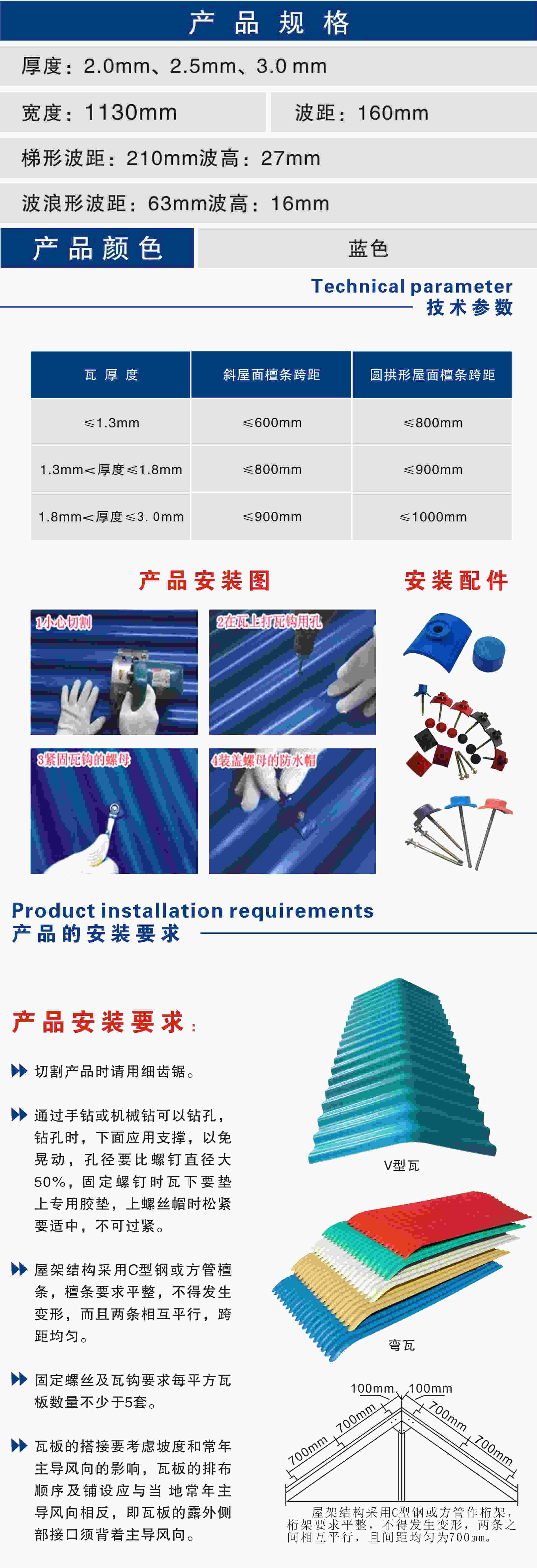 APVC瓦產(chǎn)品規(guī)格: